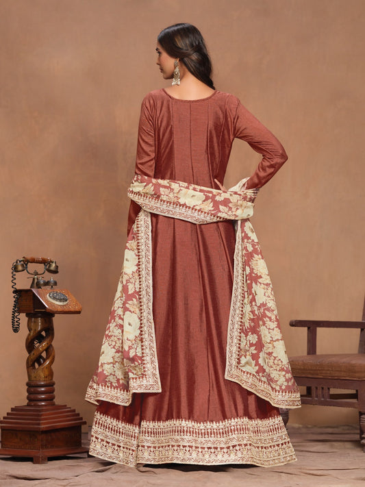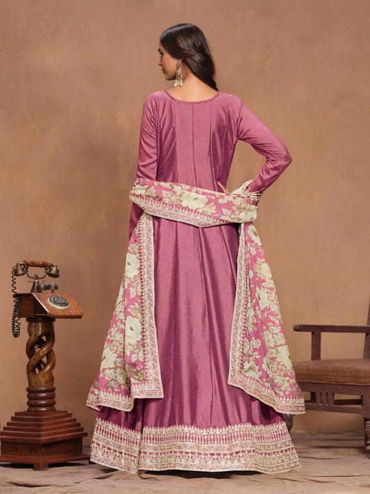 Beautiful Mauve Art Silk Floor Length Suit Set