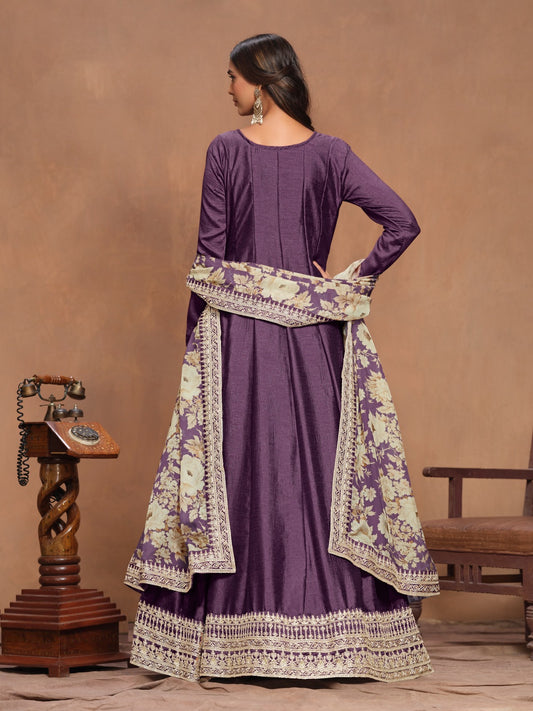 Avant-Garde Purple Viscose Gowns With Dupatta