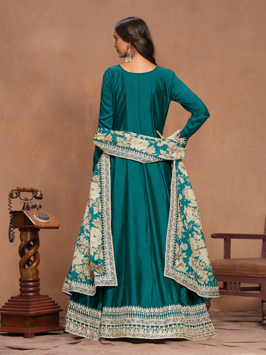 Gorgeous Teal Art Silk Floor Length Suit Set