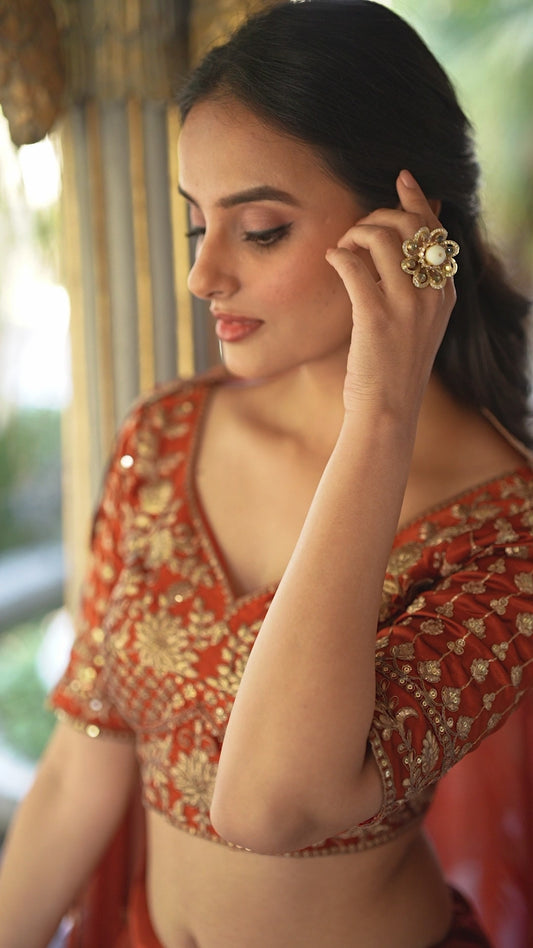 Amazing Rust Rangoli Silk Traditional Lehenga