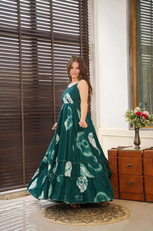 Women Green And Teal Real Chinon Gharara Bottom Suit Set