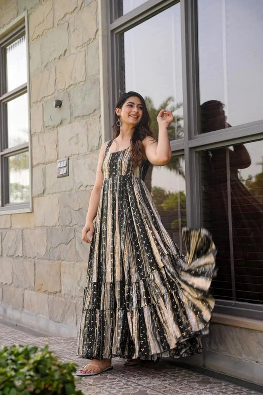 Women Black Premium Chinnon Silk Gharara Bottom Suit Set