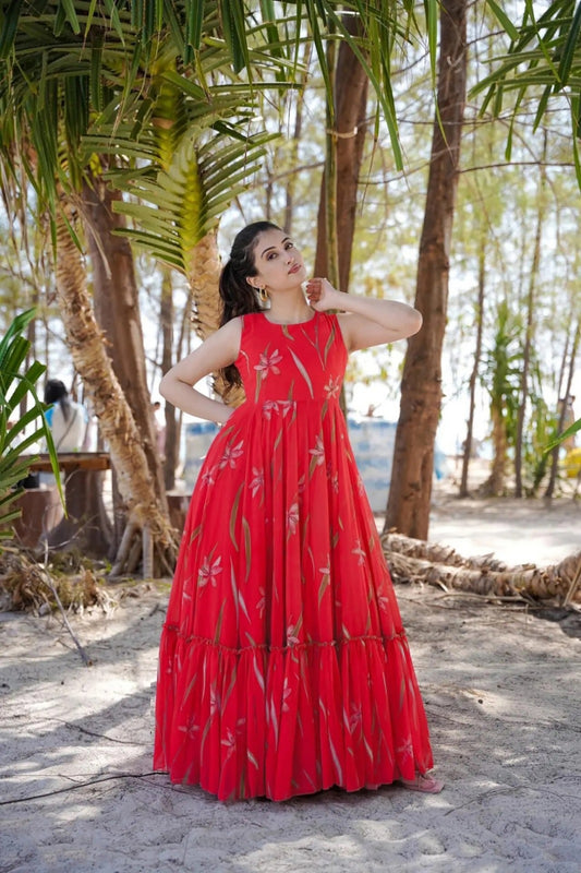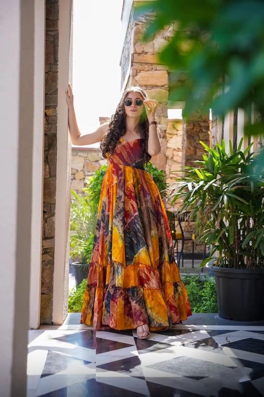 Women Mustard Blooming Georgette Anarkali Suit Set