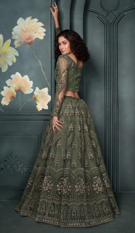 Tailored-To-Perfection Rama Green Net With Embroidery Work Bridal LehengaRegular price $173.00 USDRegular priceUnit price / per$173.00 USDSale price $173.00 USD