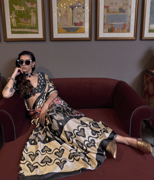 Spectacular Cream And Black Satin Crape Carnival SareeRegular price $21.00 USDRegular priceUnit price / per$21.00 USDSale price $21.00 USD
