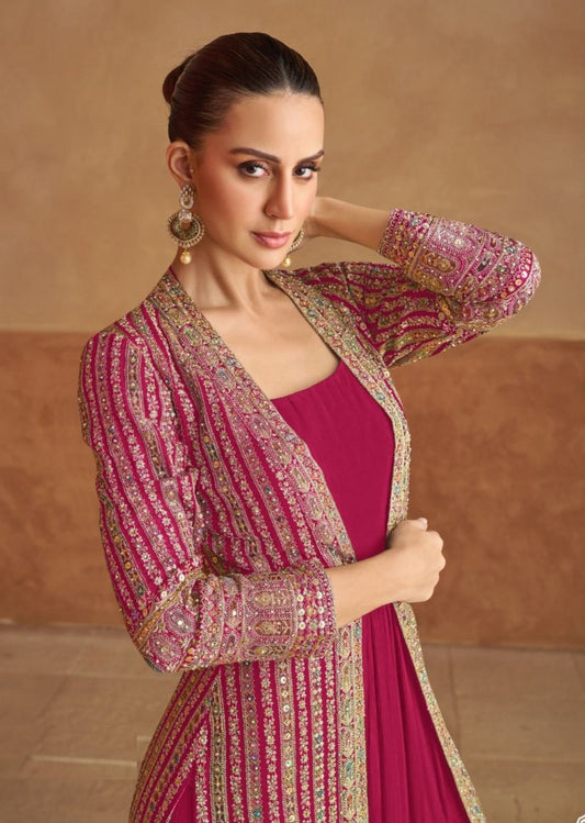 Women Pink Georgette Sequins Embroidery & Hand Work Gown With Jacket