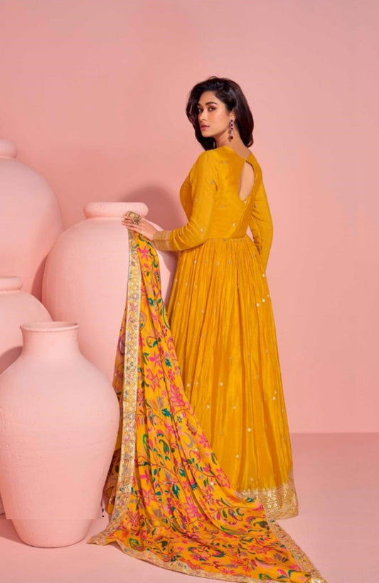 Flattering Mustard Chinon Silk Gown With DupattaRegular price $85.00 USDRegular priceUnit price / per$85.00 USDSale price $85.00 USD