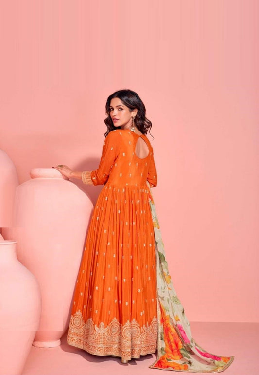 Sublime Orange Chinon Silk Gown With DupattaRegular price $85.00 USDRegular priceUnit price / per$85.00 USDSale price $85.00 USD
