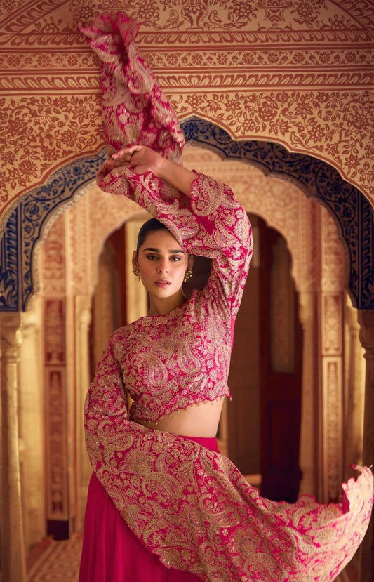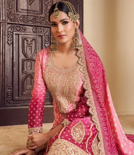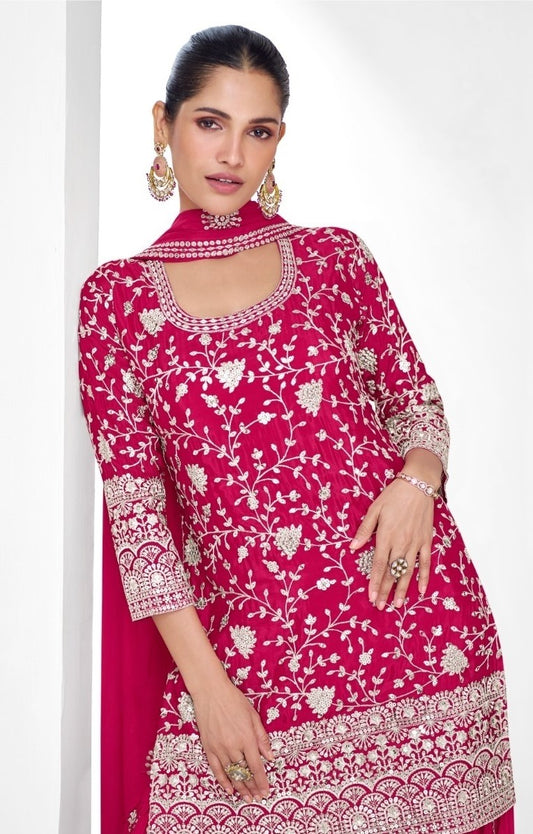 Women Pink Chinon Silk With Embroidery Work Palazzo Suit Set