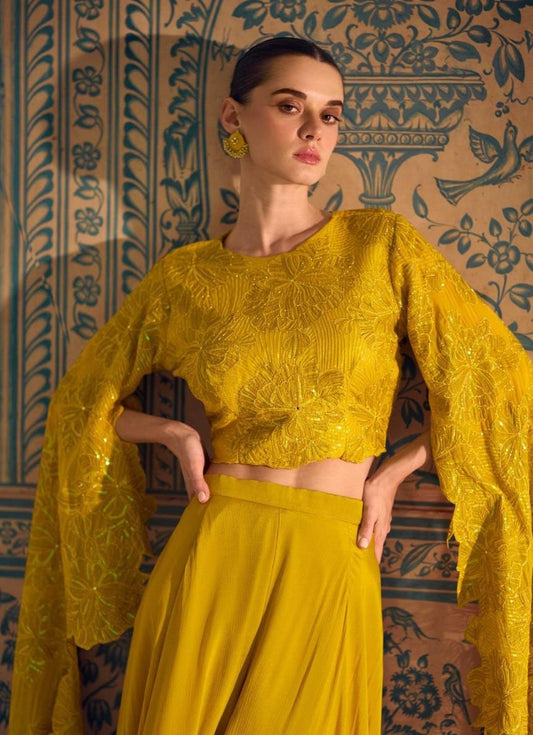 Women Mustard Shimmer Dhoti Pant Suit Set
