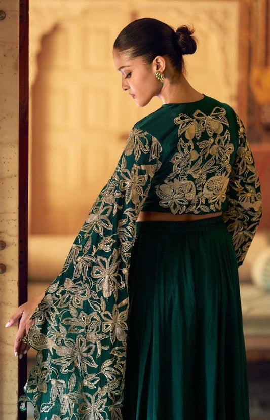 Women Rama Green Shimmer Dhoti Pant Suit Set