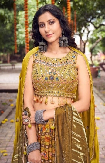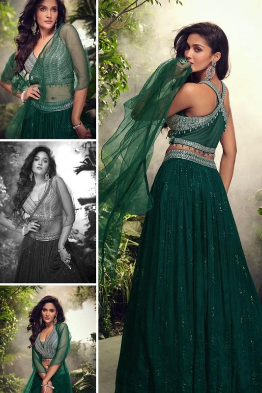 Women Green Chinon Silk Gliterring Lehenga