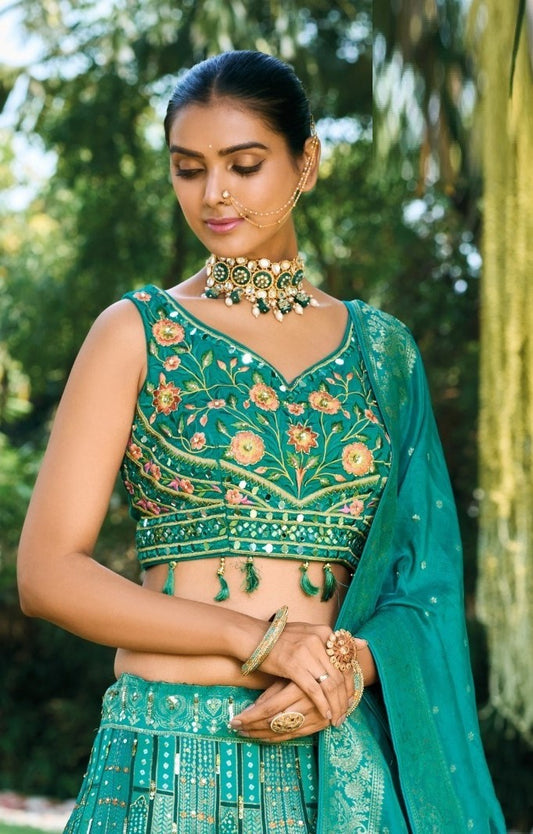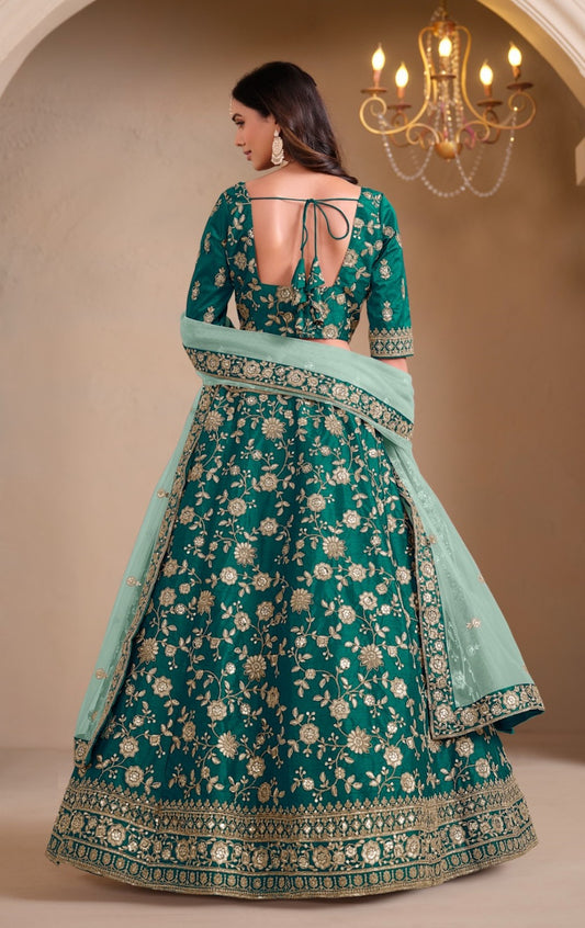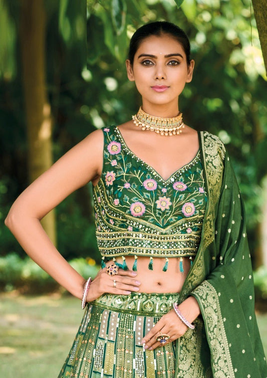 Lustrous Green Silk With Embroidery Work Bridal Lehenga