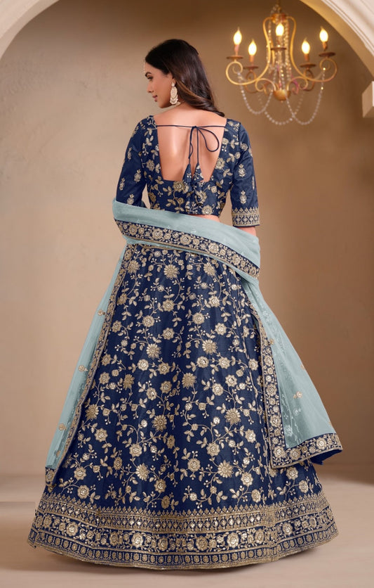Avant-Garde Blue Silk With Embroidery Work Bridal Lehenga