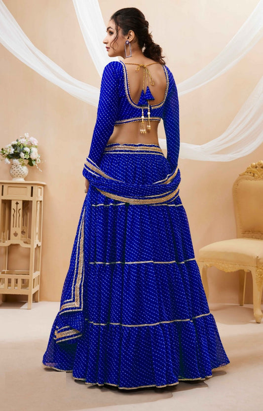 Stylish Navy Blue Chinon Silk Digital Print With Embroidery Stylish Lehenga
