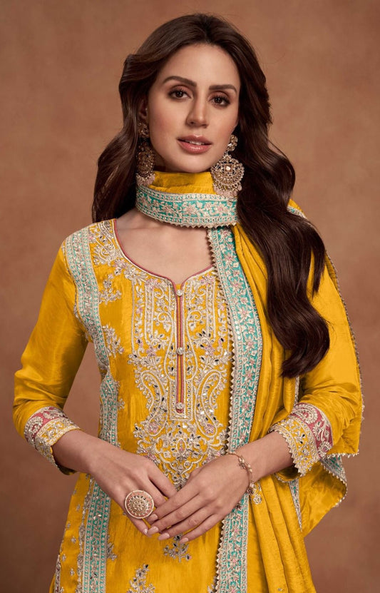 Gleaming Yellow Simar Silk Palazzo Suit Set