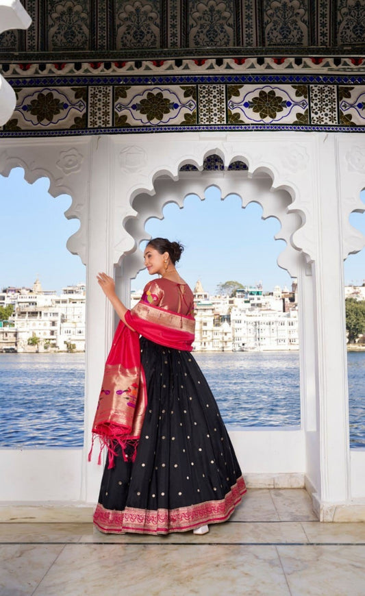 Trendy Black And Pink Jacquard Silk Paithani Silk Lehenga