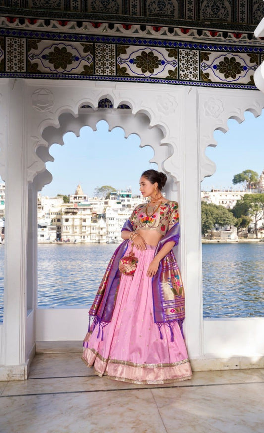 Flawless Light Pink Jacquard Silk Paithani Silk Lehenga