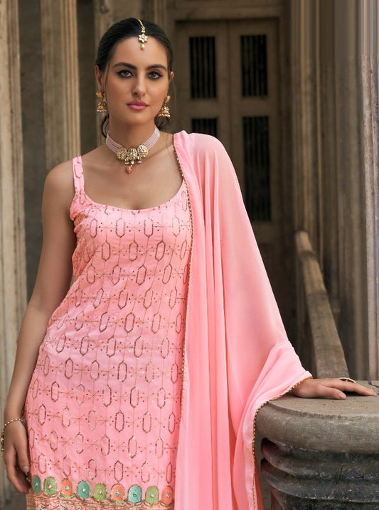 Radiant Light Pink Faux Georgette Sharara Suit Set