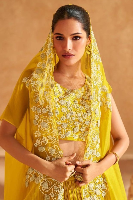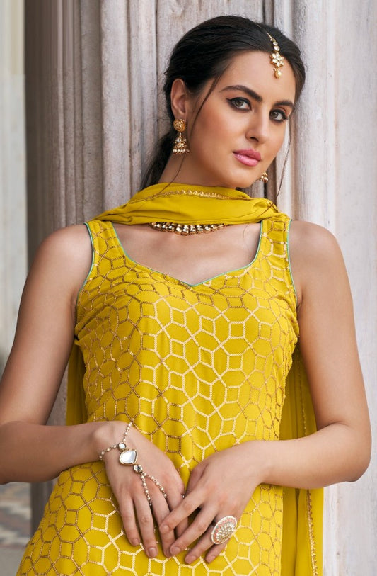 Sculpted Mustard Faux Georgette Sharara Suit Set