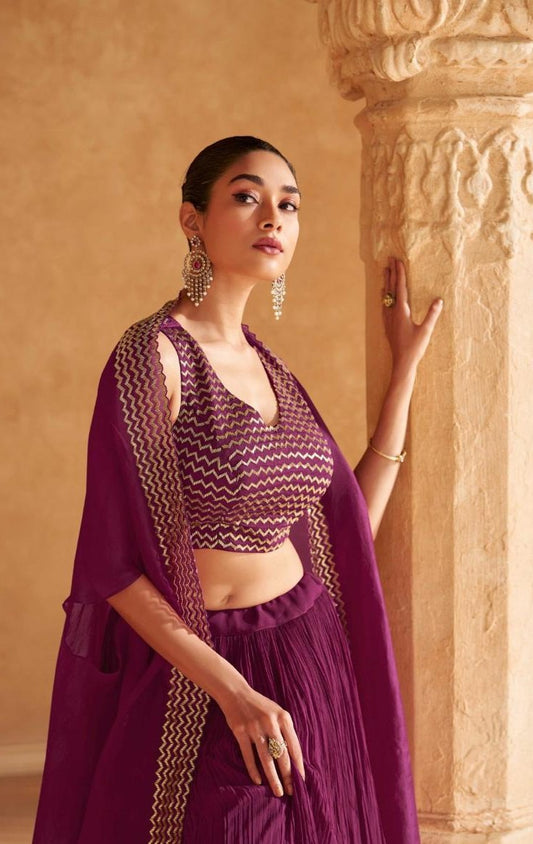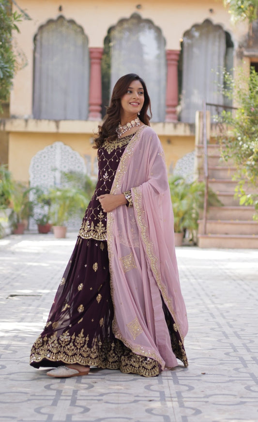 Flawless Dark Purple Georgette Embroidery Work Sharara Suit Set