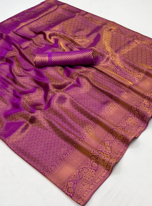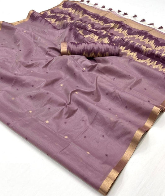 Sculpted Light Purple Handloom Weaving Silk Saree