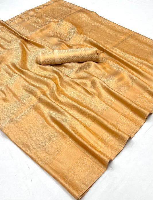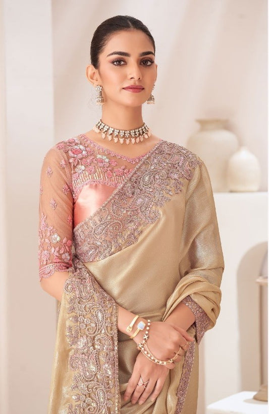 Opulent Beige Satin Chiffon Boutique Style Saree