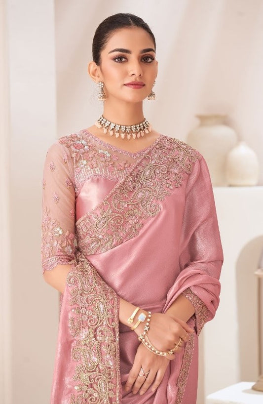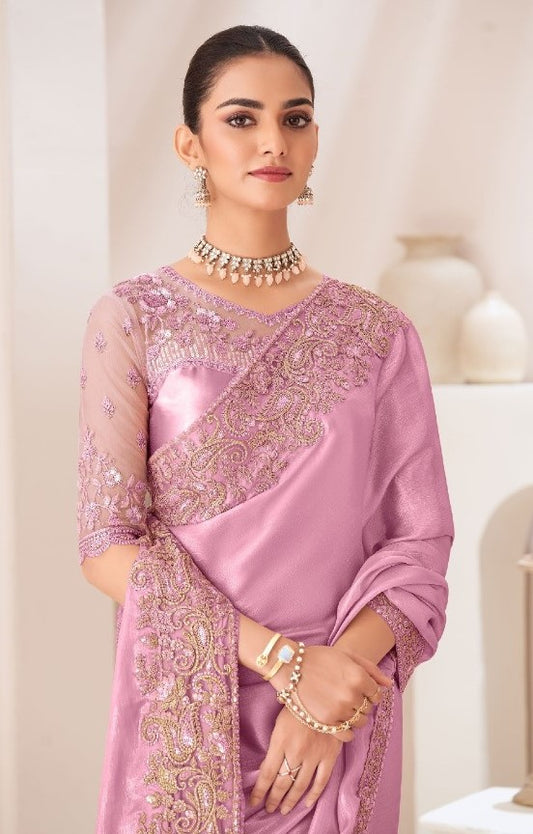 Dazzling Mauve Satin Chiffon Boutique Style Saree