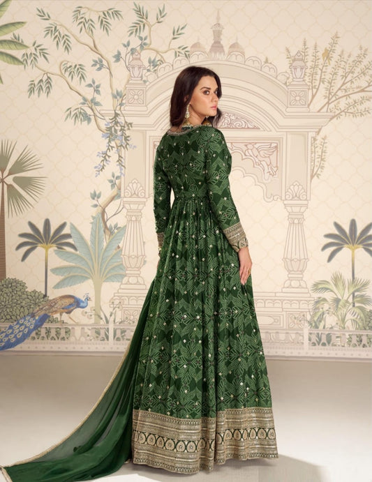 Women Lilac Chinon Digital Print Gown With Dupatta