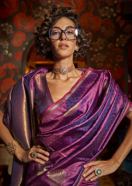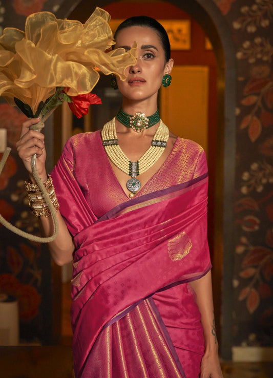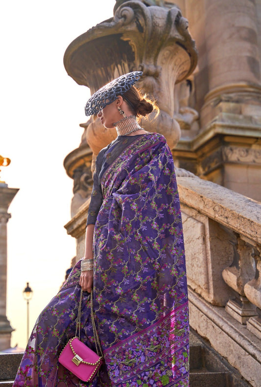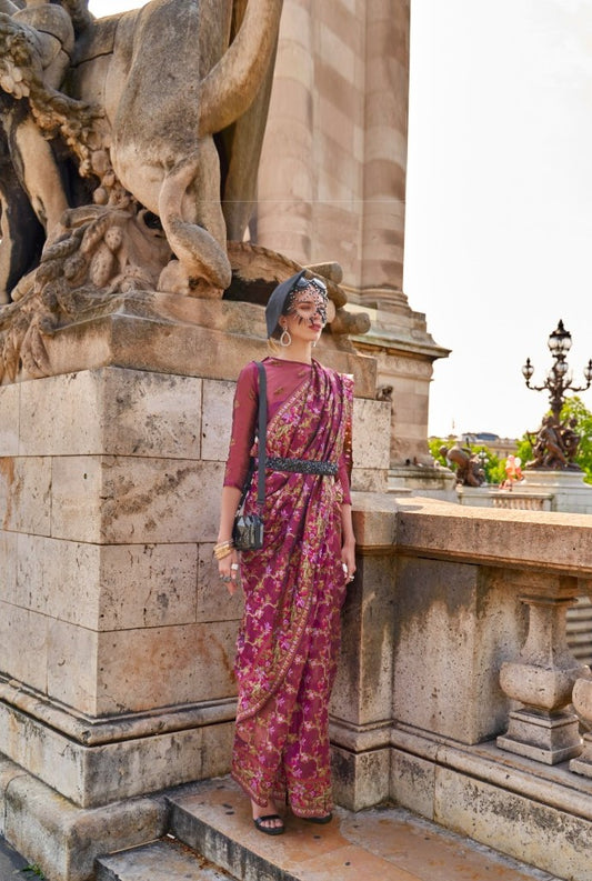 Pretty Magenta Organza Handloom Kashmiri Saree