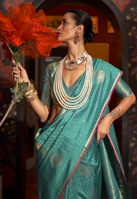 Flawless Sea Green Organza Handloom Kashmiri Saree