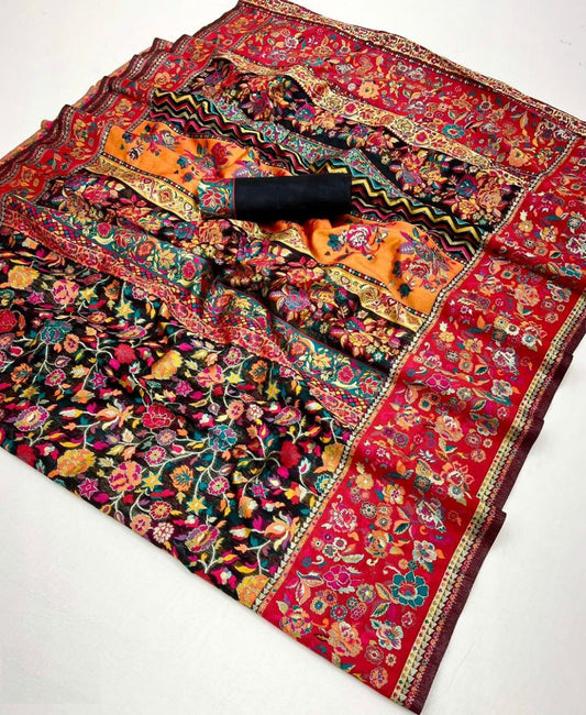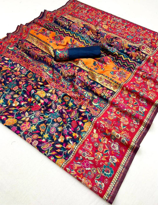 Fancy Silk Navy Blue Multicolor Kashmiri Saree