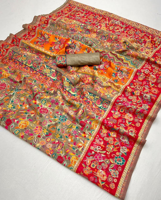 Vintage Silk Beige Multicolor Kashmiri Saree