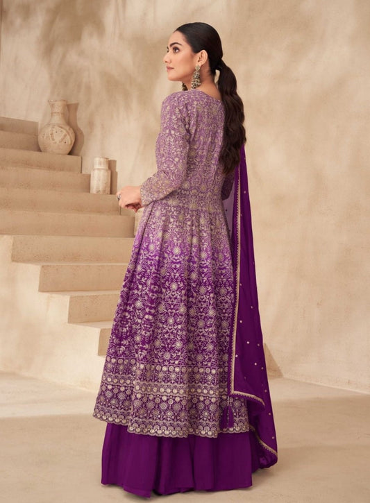 Fabulous Purple Georgette Front-Slit Salwar Suit Set