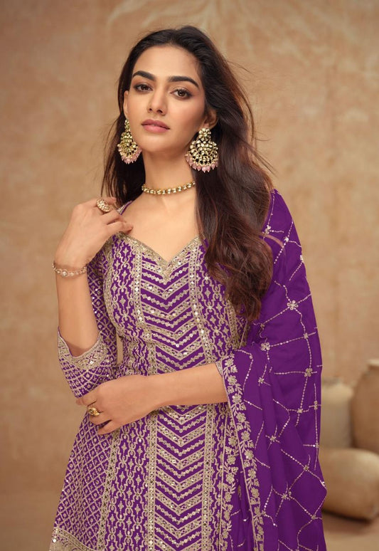 Women Purple Chinon Fabric Palazzo Suit Set