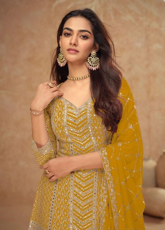 Trending Mustard Chinon Palazzo Suit Set