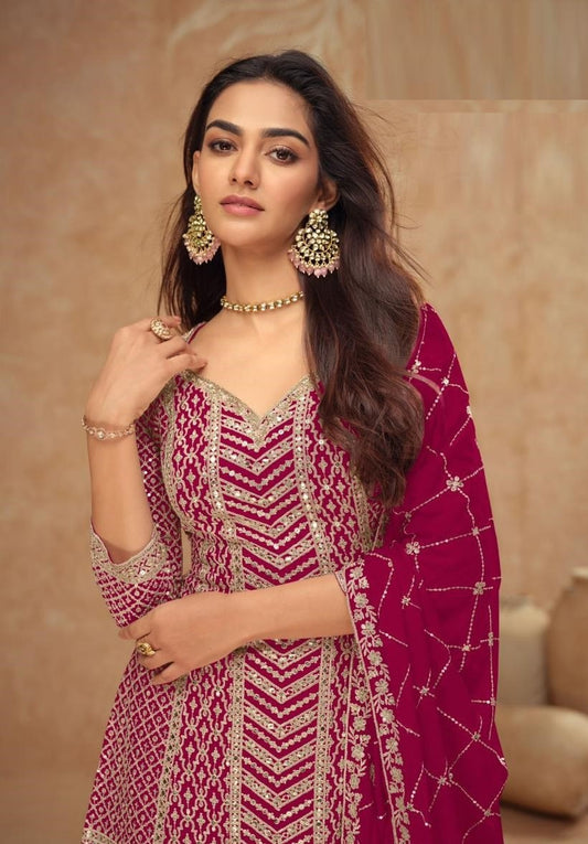 Unique Pink Chinon Palazzo Suit Set