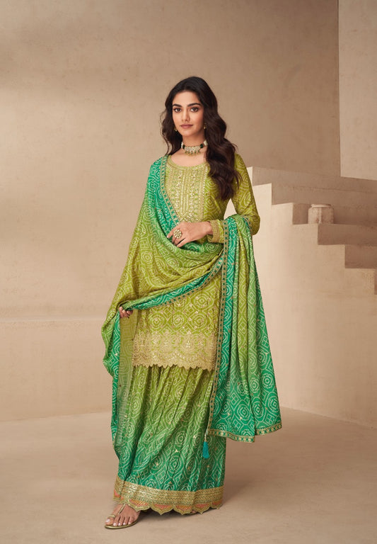 Dark Mehndi Green Chinon Palazzo Suit Set
