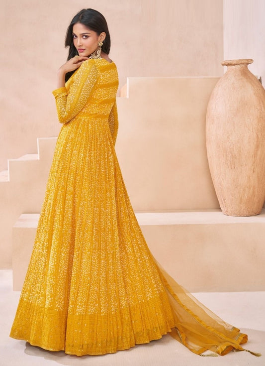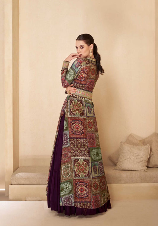 Embroidery Georgette Purple Gown With Multicolor Shrug