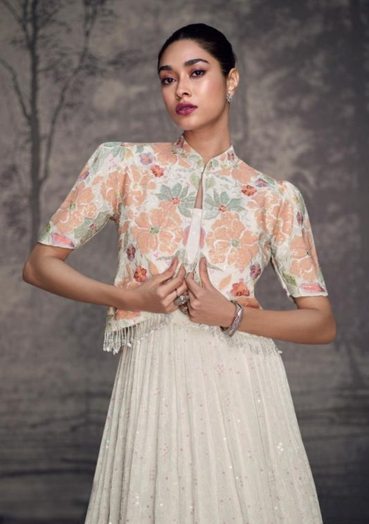 White Georgette Indo Western Dress