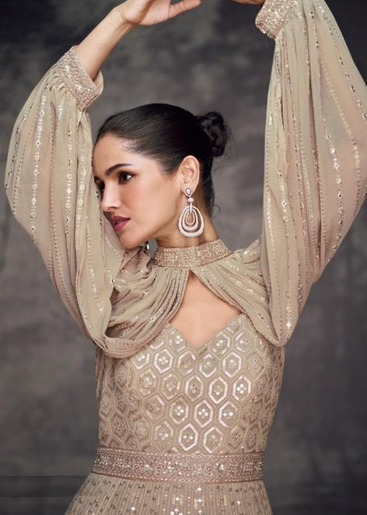 Georgette Beige Indo Western Dress