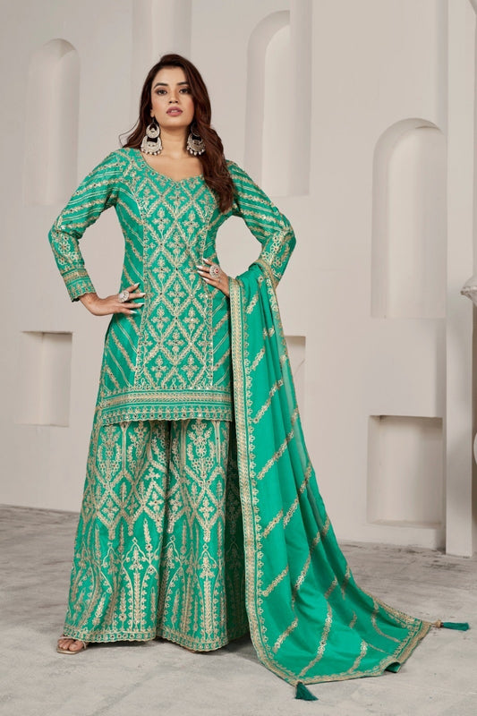 Sea Green Chinnon Palazzo Suit Set