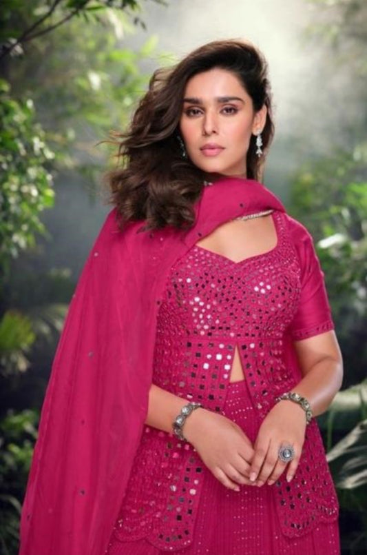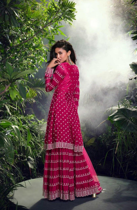 The Festive Pink Top Palazzo And Dupatta Suit Set
