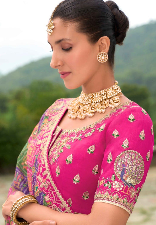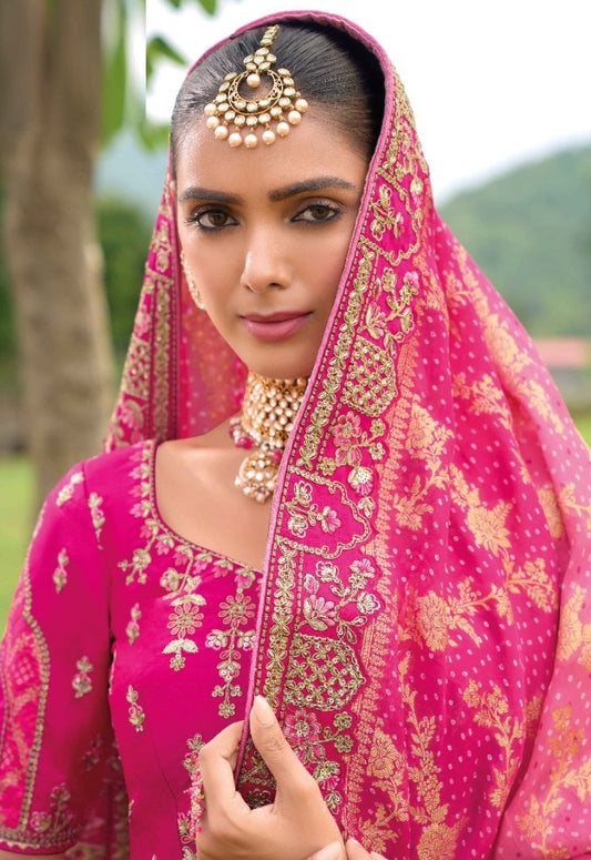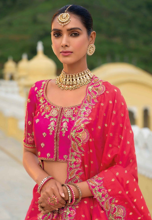 Pink Silk Bridal Lehenga With Embroidery Work