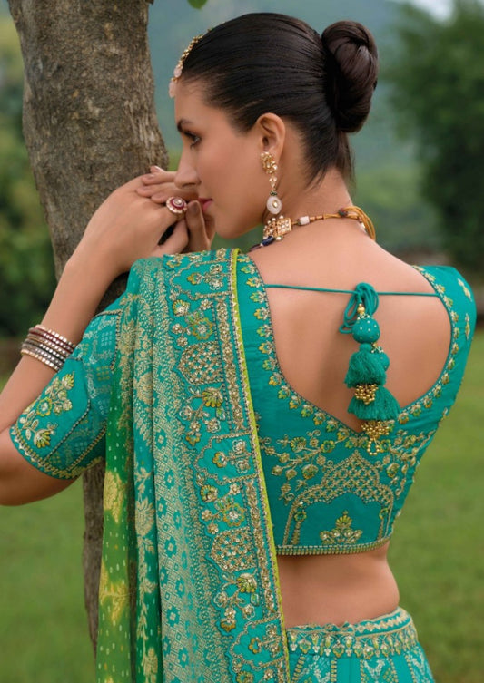 Sea Blue And Green Silk Bridal Lehenga With Embroidery Work