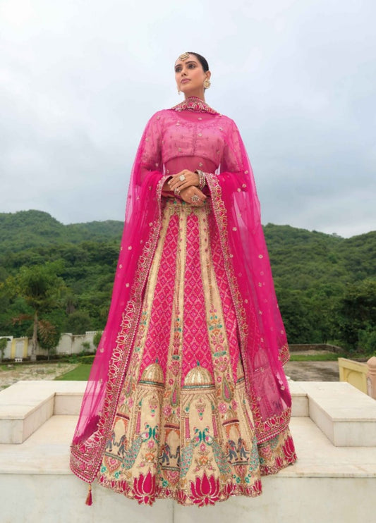 Silk Bridal Lehenga Pink And Off White With Embroidery Work
