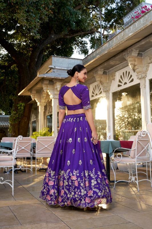 Violet Silk Indian Bridal Lehenga With Embroidery Work