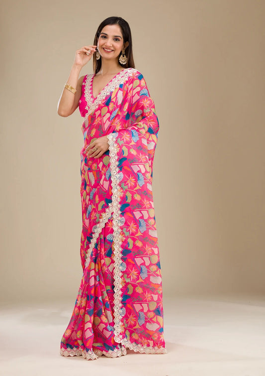 Pink Multi Color Georgette Digital Prints Printed Carnival Saree