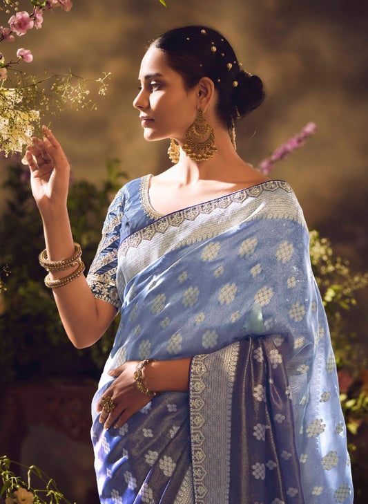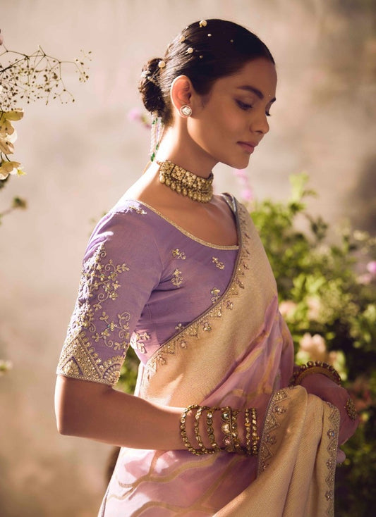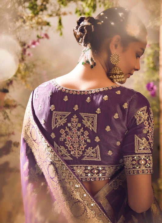 Light Purple Banarasi Zari Tissue Silk Embroidery Saree