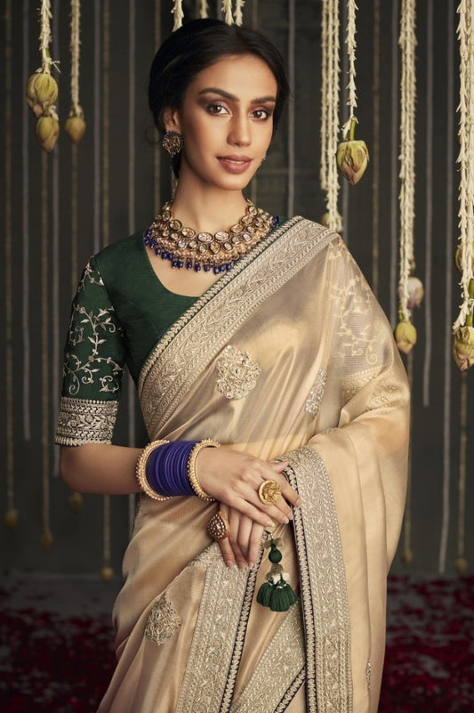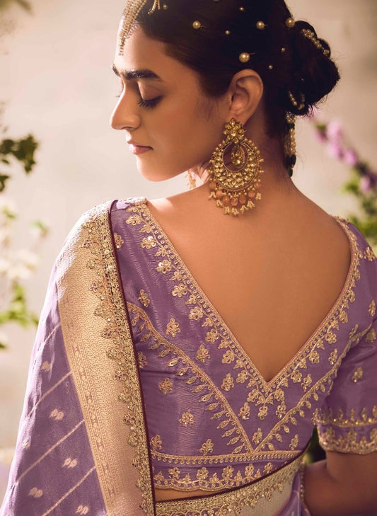 Women Purple Banarasi Tissue Silk Embroidery Saree